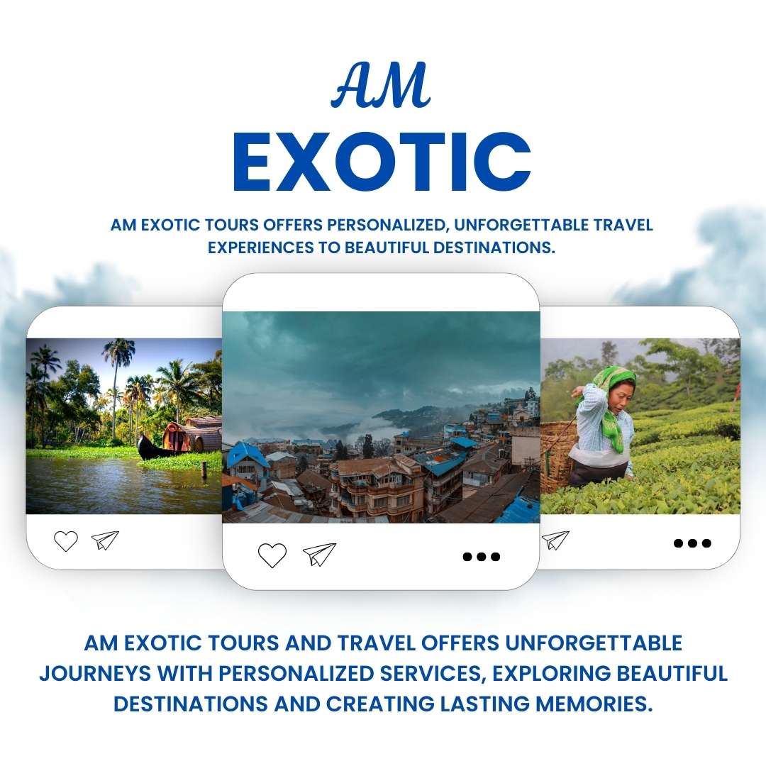 Am Exotic Tours and Travel is dedicated to providing exceptional domestic and international tours, designed to offer unique and personalized travel experiences. We focus on delivering seamless, hassle-free journeys with expert guidance and outstanding customer service. Whether you're exploring scenic destinations within India or venturing abroad, we ensure a memorable, enriching experience. Trust us to curate your perfect getaway, combining adventure, relaxation, and cultural immersion to create lasting memories.